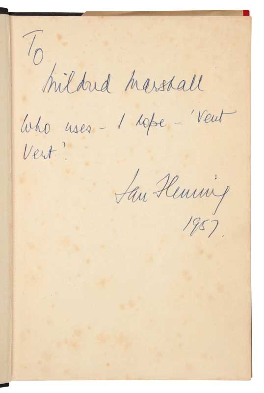 Not all authors regularly signed or gifted copies of their books, but Fleming seems to have made a habit of it. His inscriptions hint at his wit and social nature.