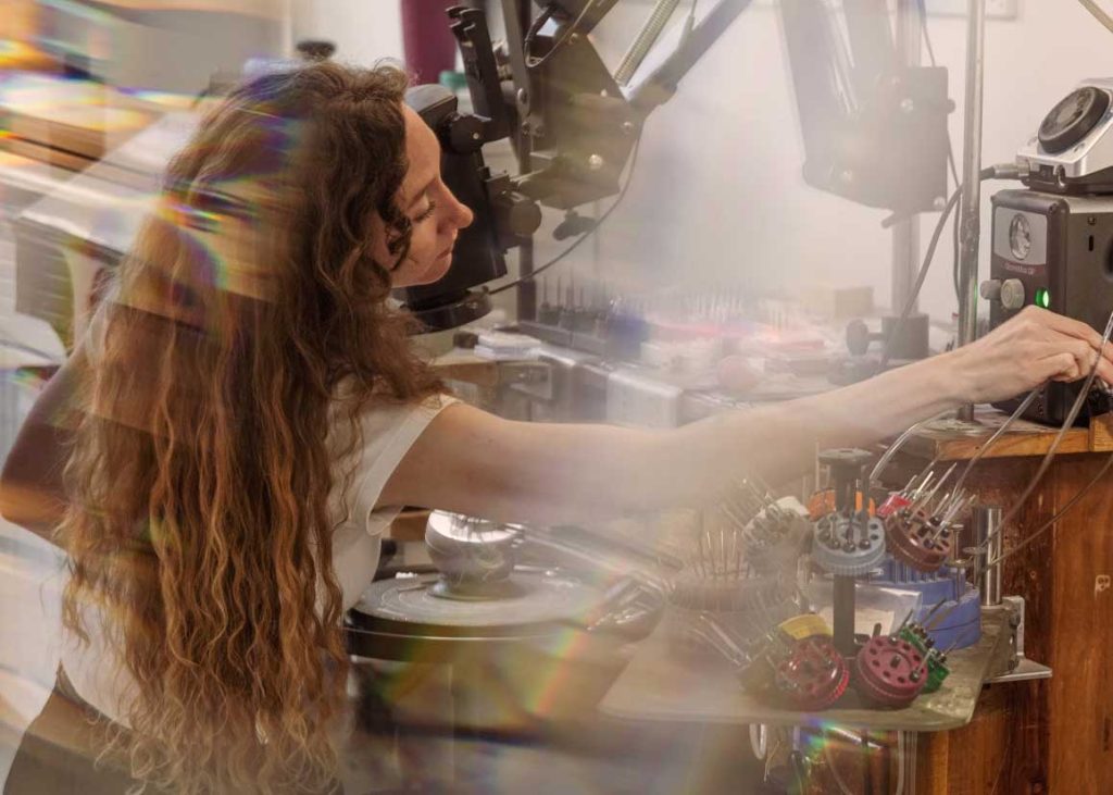 KINDRED LUBECK OF ARTIFEX FINE JEWELRY, NYC, DESIGNED POP SINGER TAYLOR SWIFT’S ENGAGEMENT RING FROM NFL STAR TRAVIS KELCE. NOW LUBECK HAS DESIGNED THREE ADDITIONAL BESPOKE RINGS, USING STONES SOURCED BY DEALER ANUP JOGANI, ON OFFER AT SOTHEBY’S. PHOTOGRAPHS BY EMMA ROSE MILLIGAN FOR SOTHEBY’S